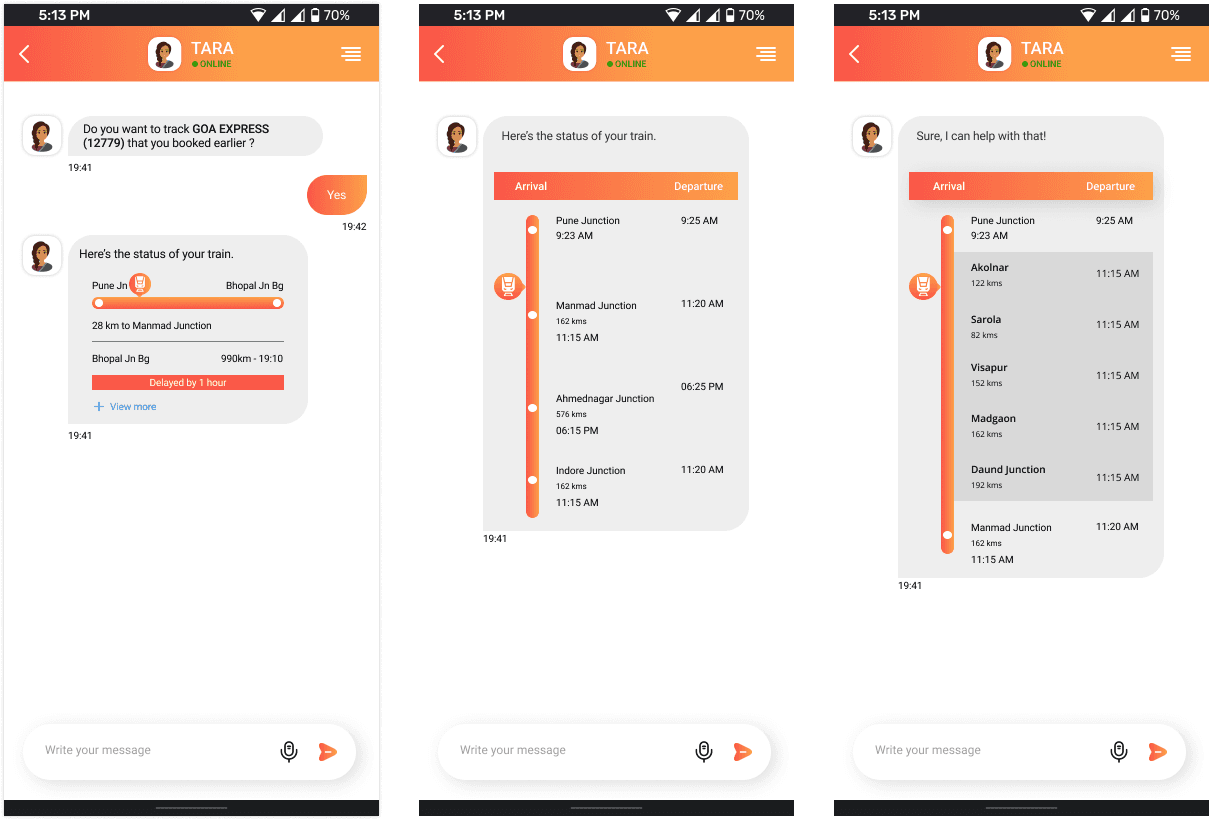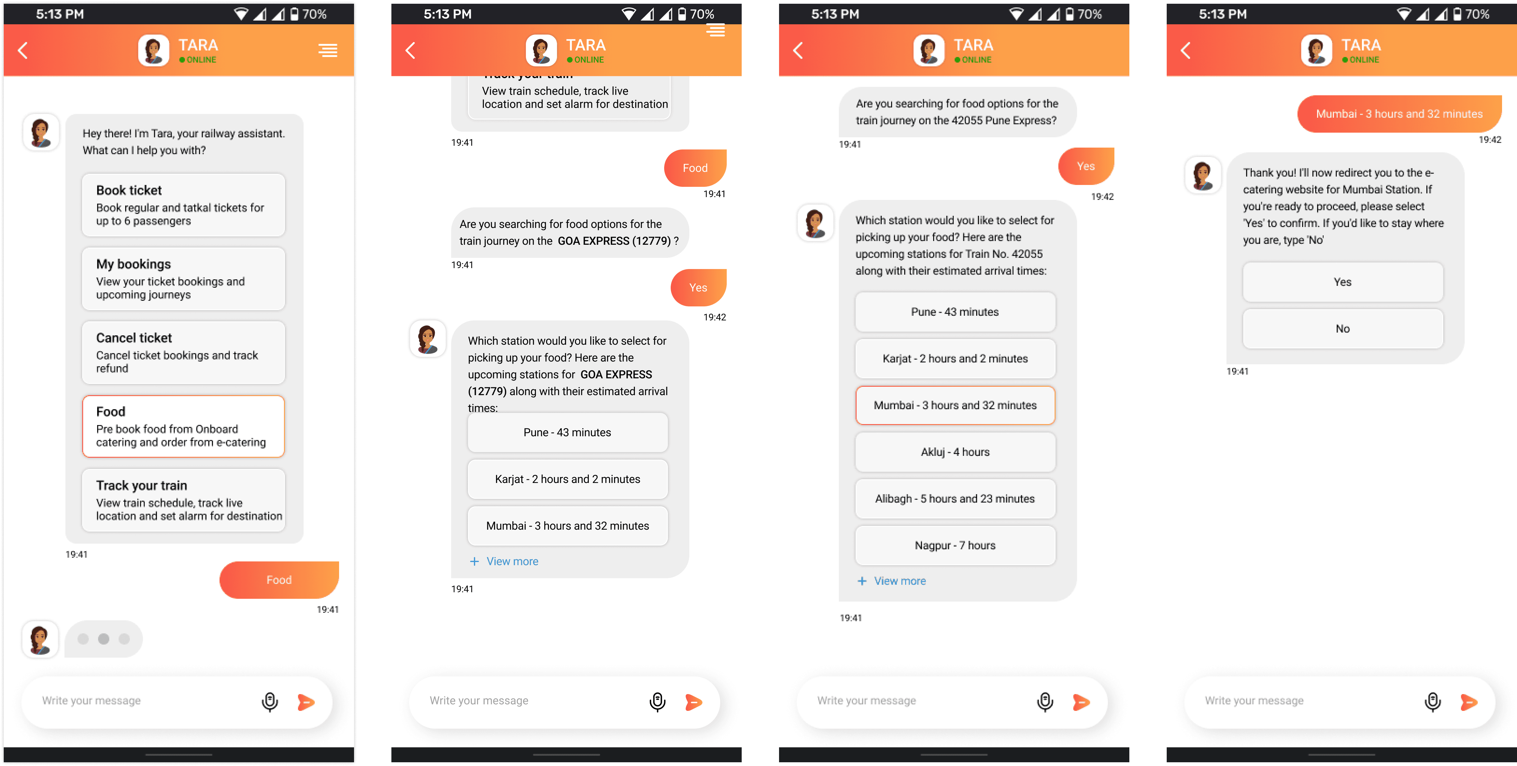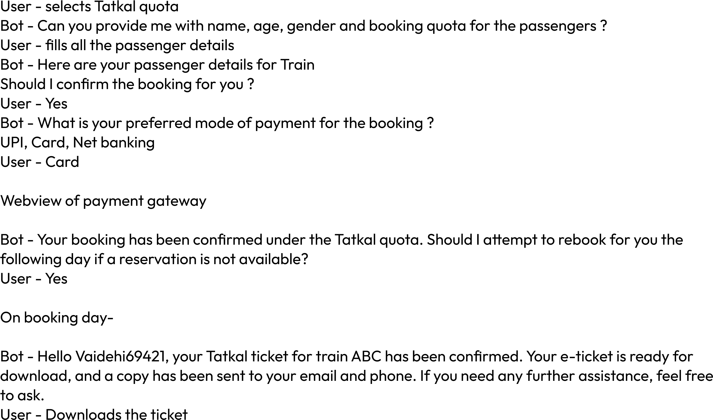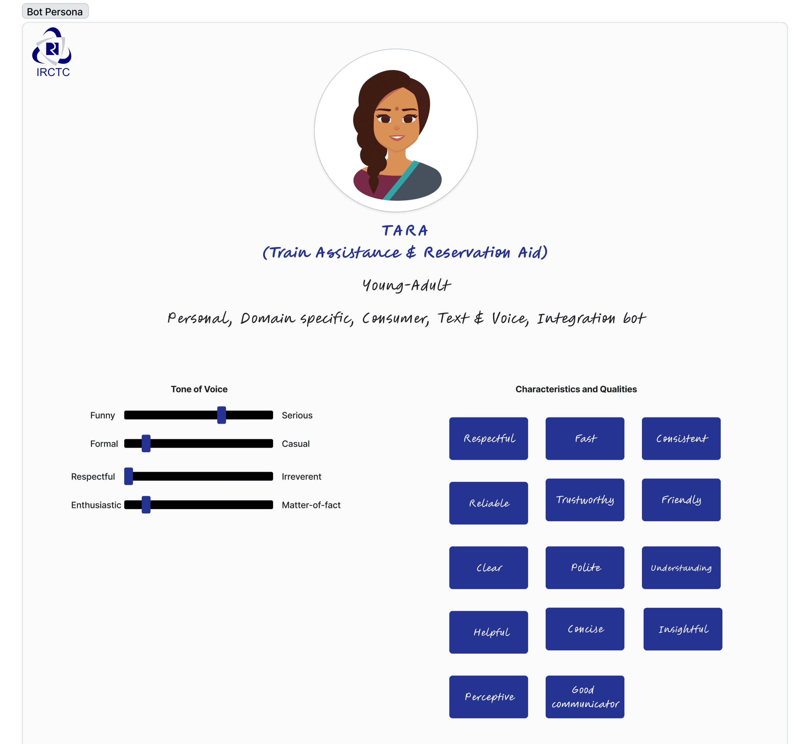 TARA is an AI chatbot that helps passengers find the best train, optimal booking time, and reduces mental load for advance and tatkal bookings.